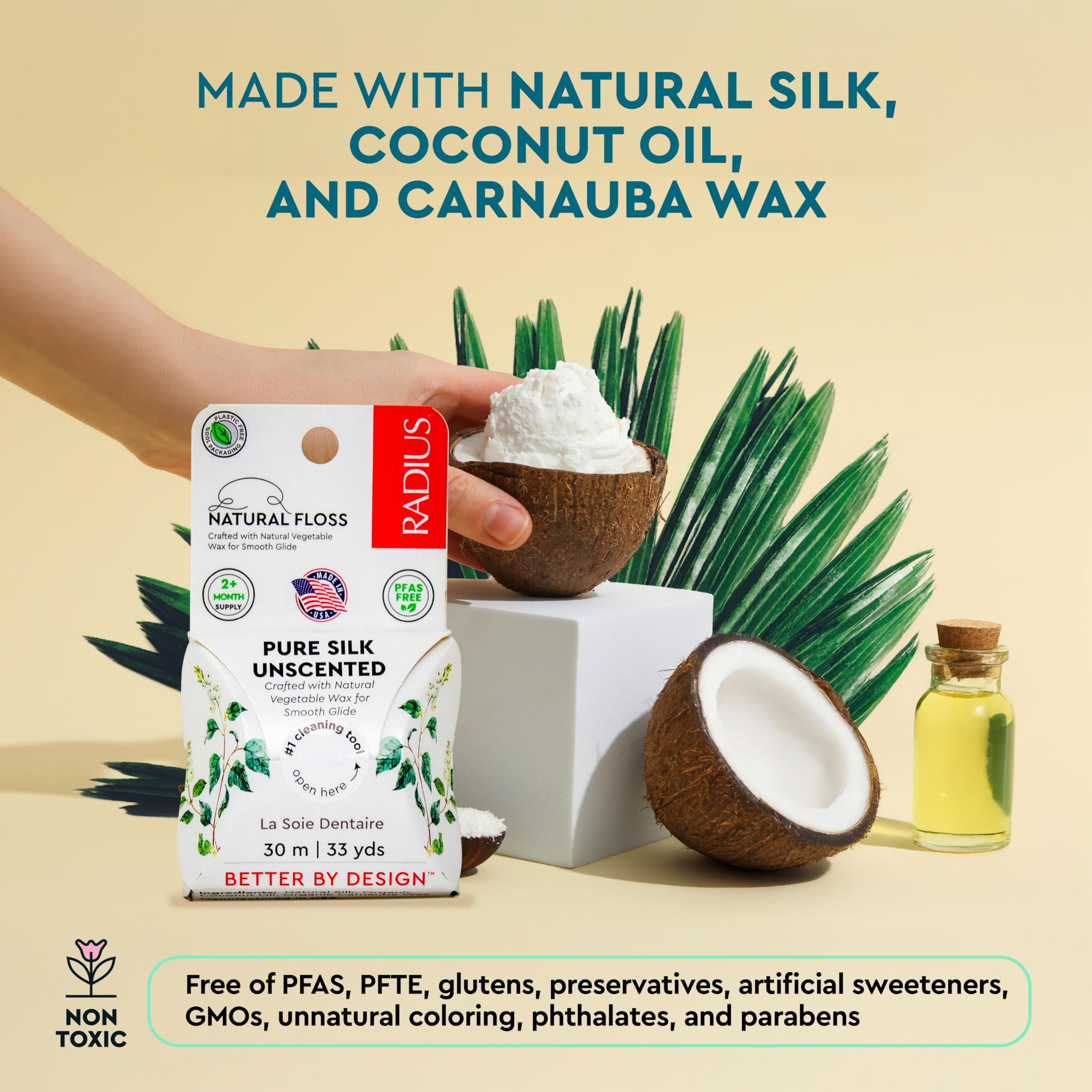 Radius Natural Unscented Silk Dental Floss 33 Yards Vegan & Non-Toxic Oral Care Boost & Designed to Help Fight Plaque Clear - Pack of 1